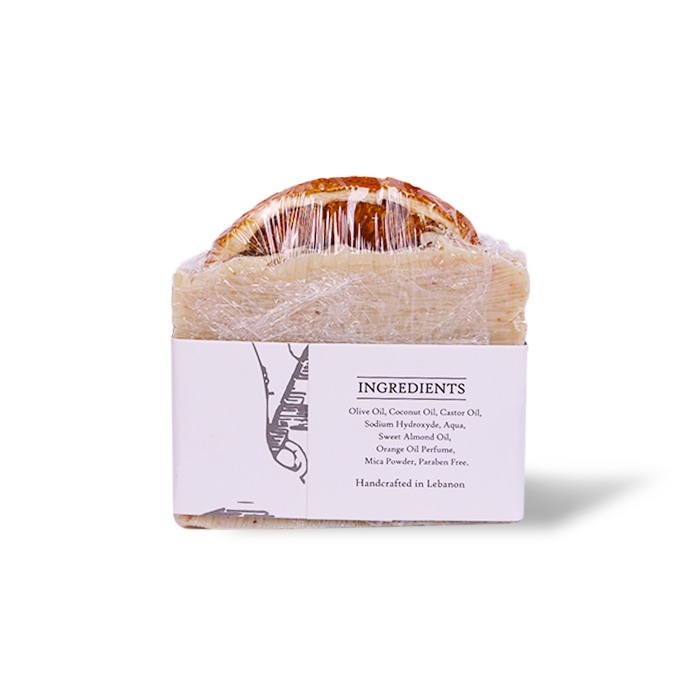 Olive Oil, Coconut Oil, Castor Oil, Sodium Hydroxyde, Aqua, Sweet Almond Oil,Orange Oil Perfume, Mica Powder, Paraben Free.