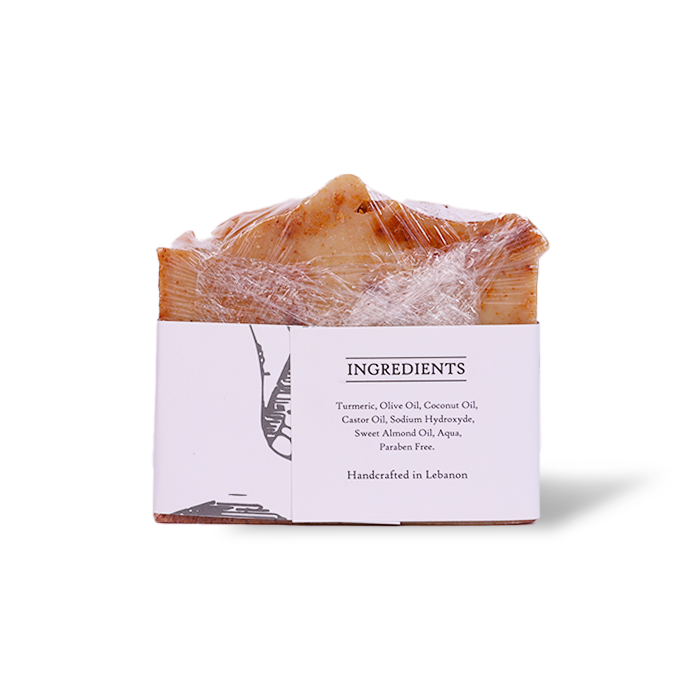 Turmeric, Olive Oil, Coconut Oil, Castor Oil, Sodium Hydroxyde, Sweet Almond Oil, Aqua, Paraben Free.